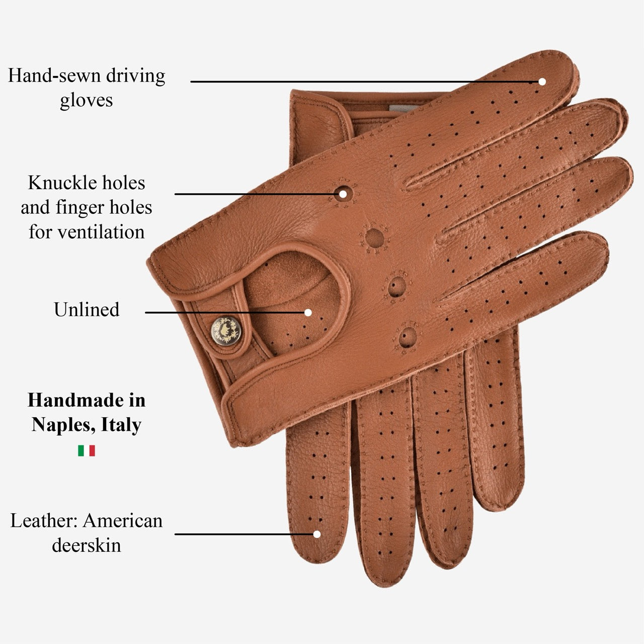 Leonardo (brown) - Italian driving gloves made of American deerskin leather
