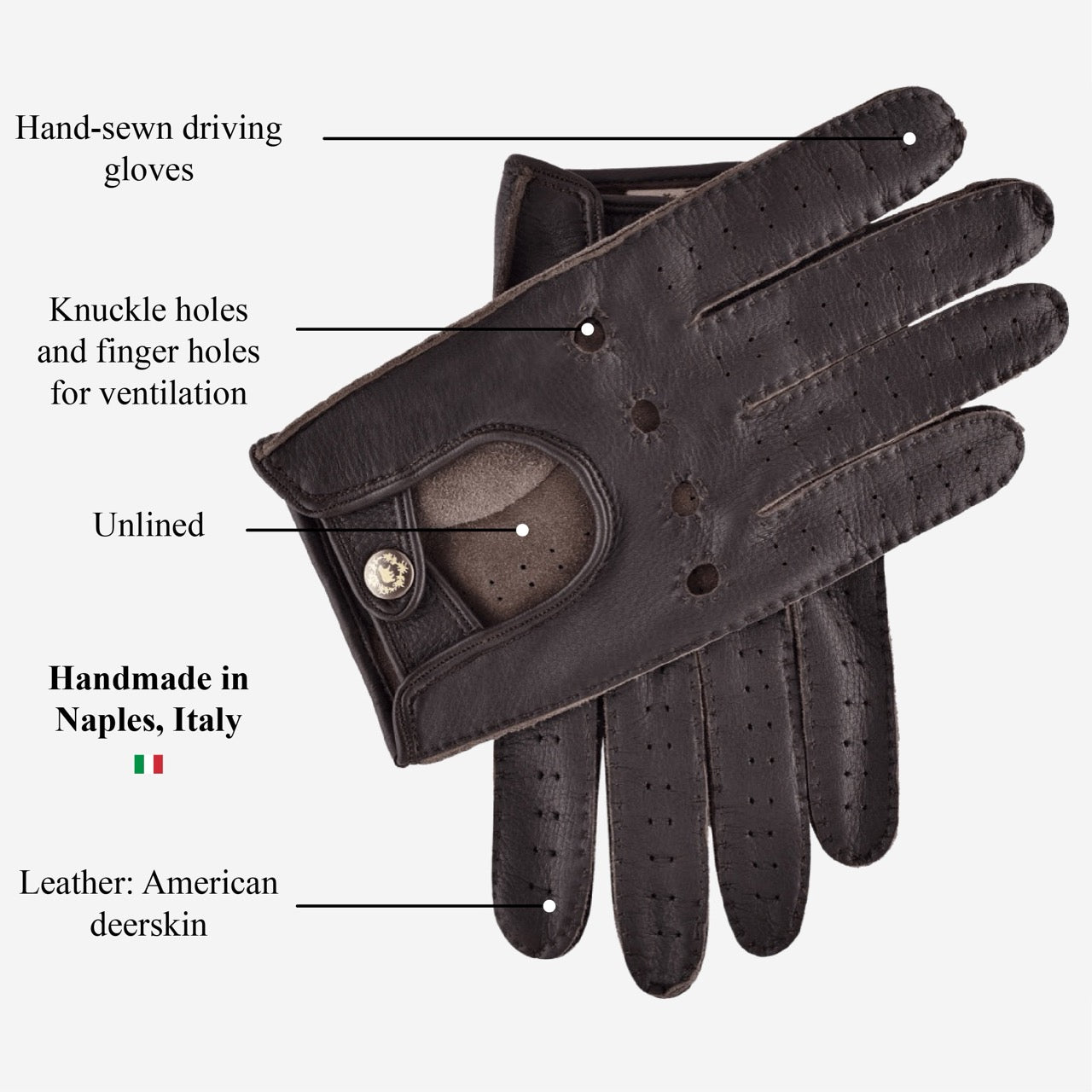 Leonardo (dark brown) - Italian driving gloves made of American deerskin leather