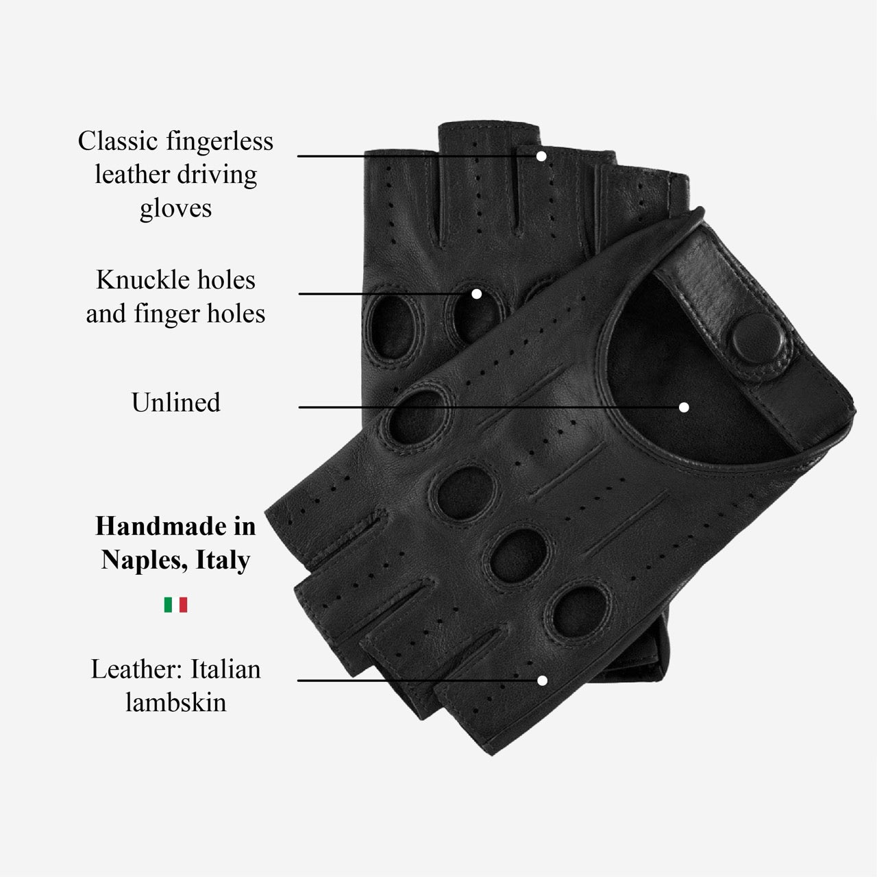 Rossana (black) - Italian fingerless lambskin leather driving gloves