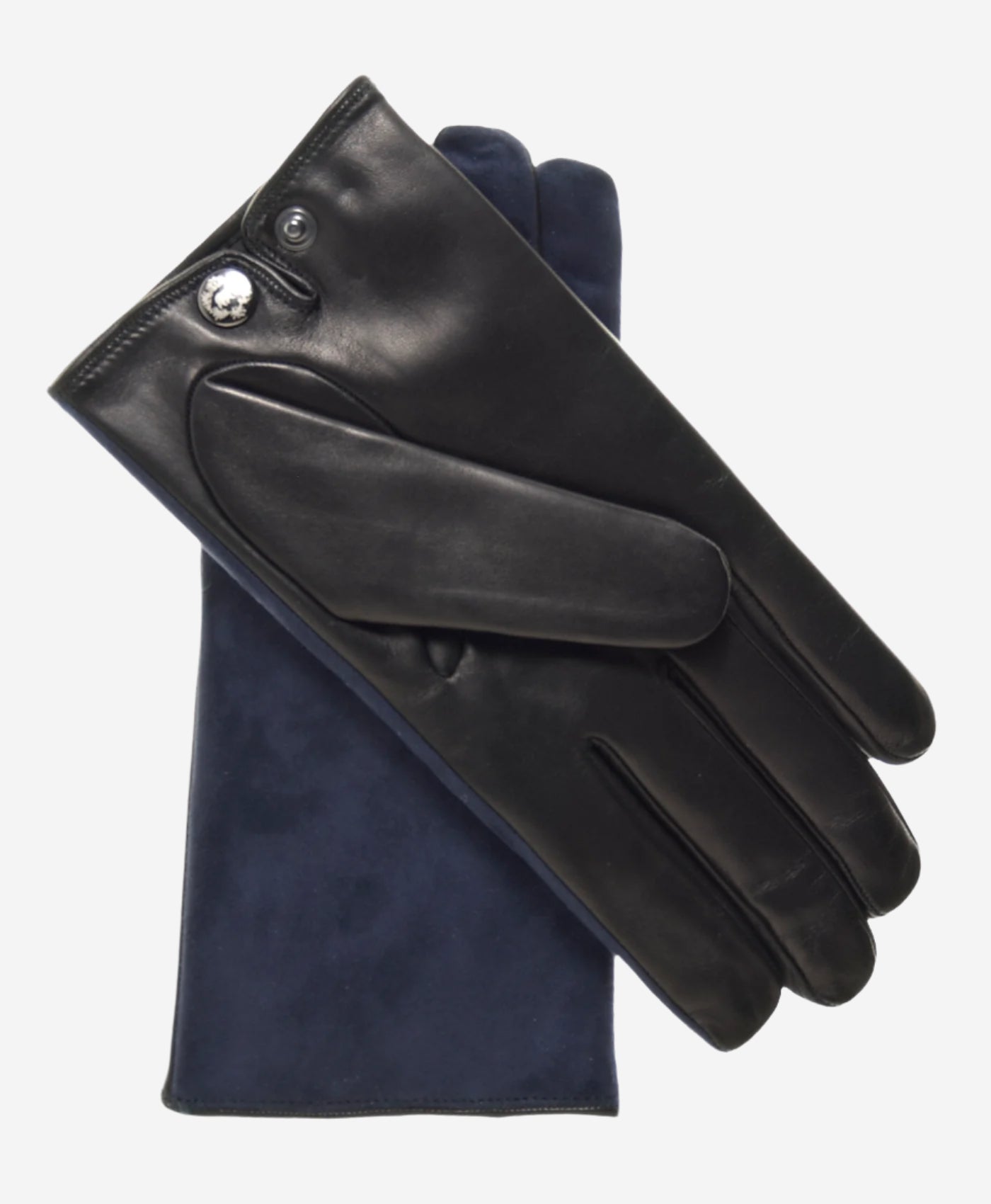 CC3414 (blue/black) - Men's suede and lambskin gloves with cashmere lining with snap
