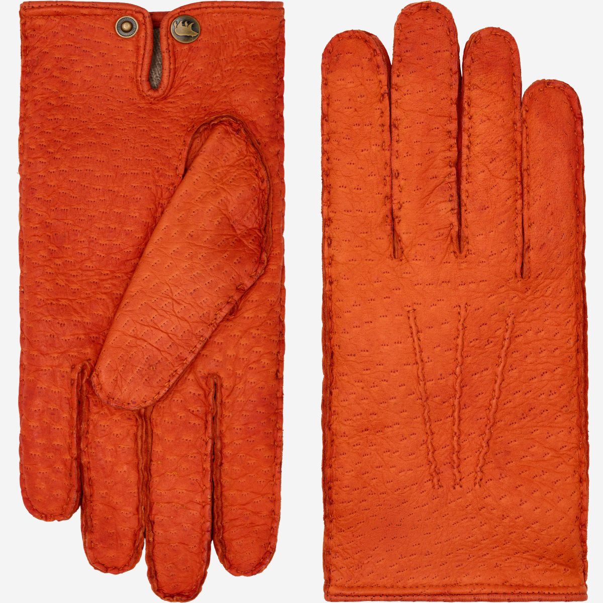 Antonio (orange) - Italian peccary leather gloves with cashmere lining
