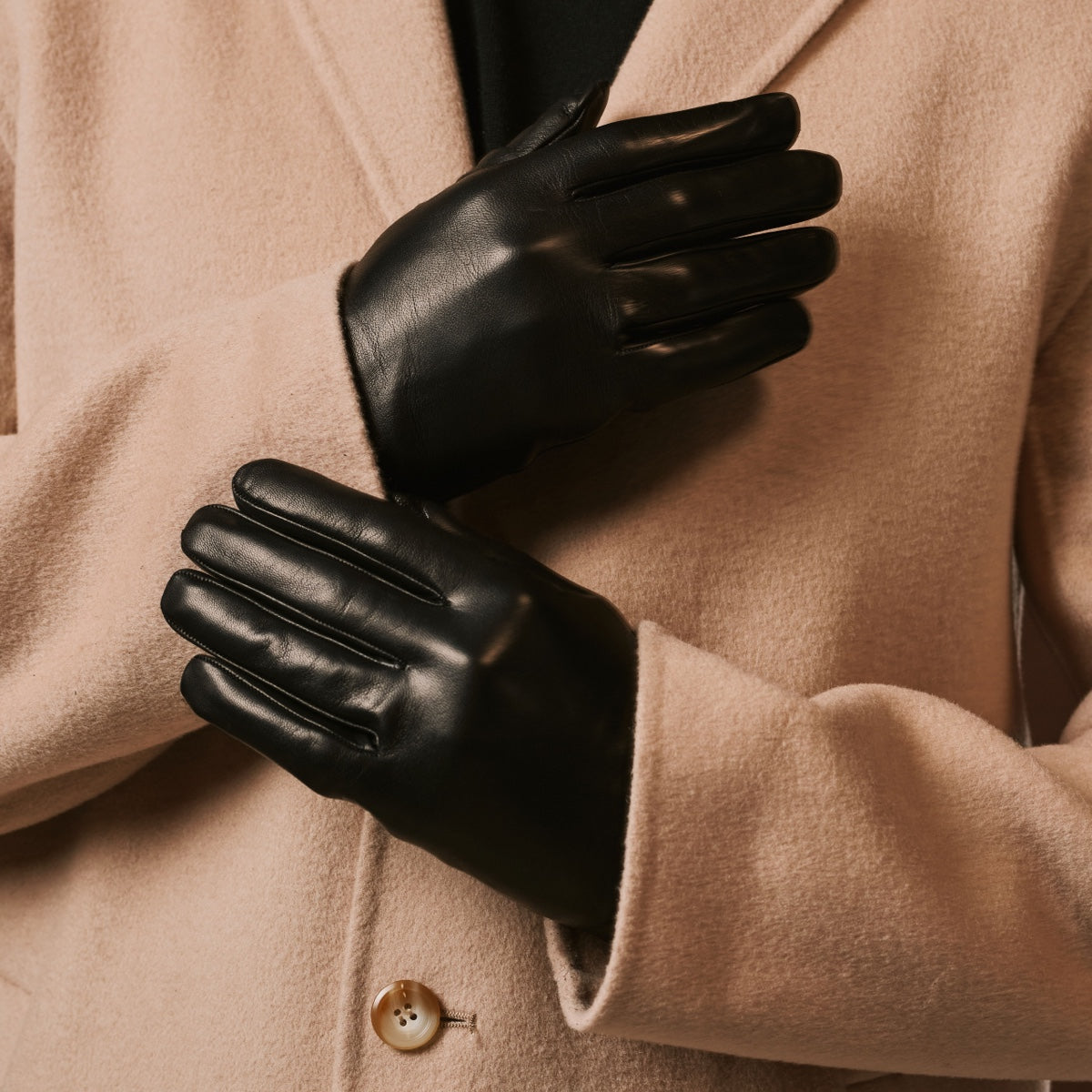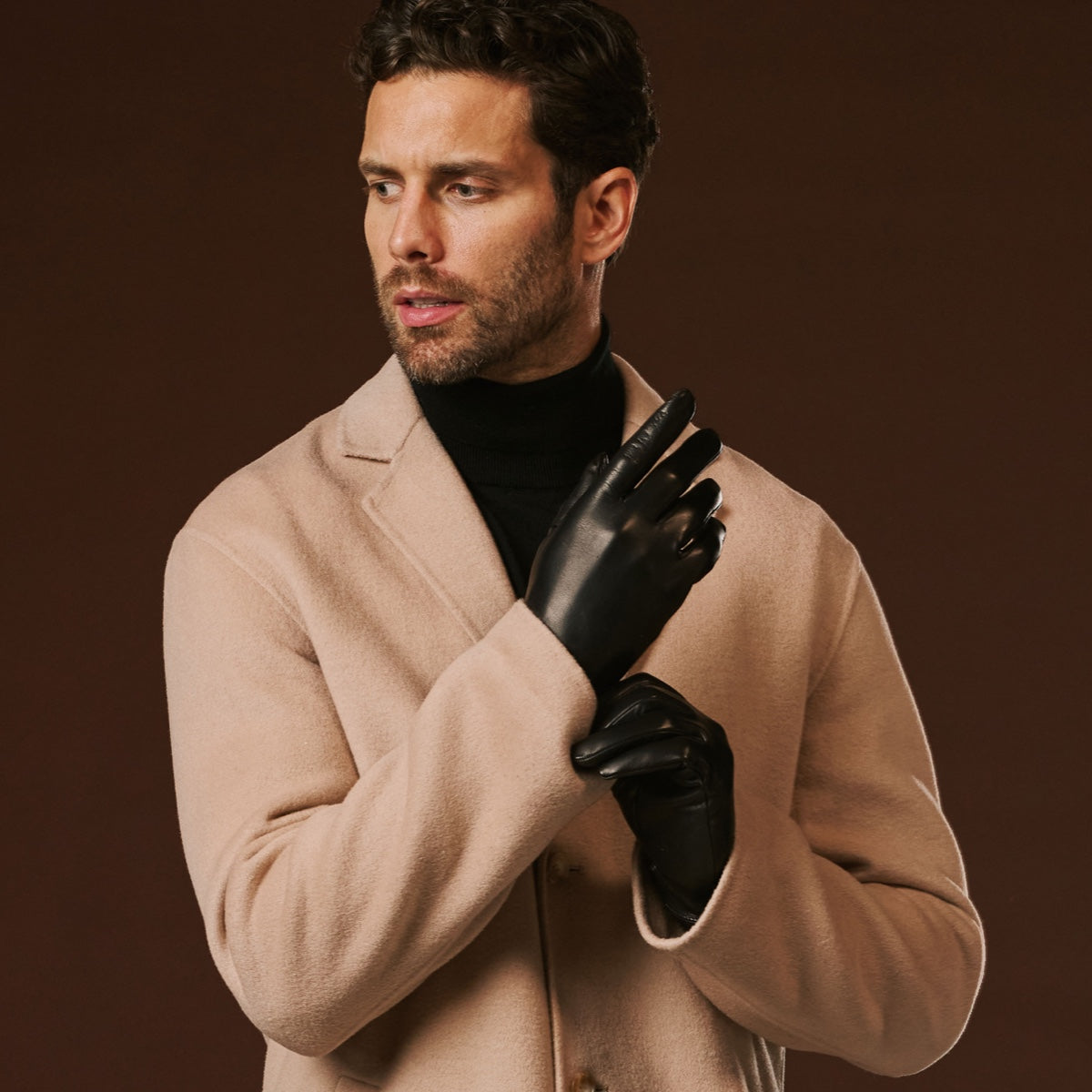 Fabio (black) - Men's classic Italian lambskin leather gloves with pure silk lining