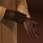 Fabio (brown) - Men's classic Italian lambskin leather gloves with pure silk lining