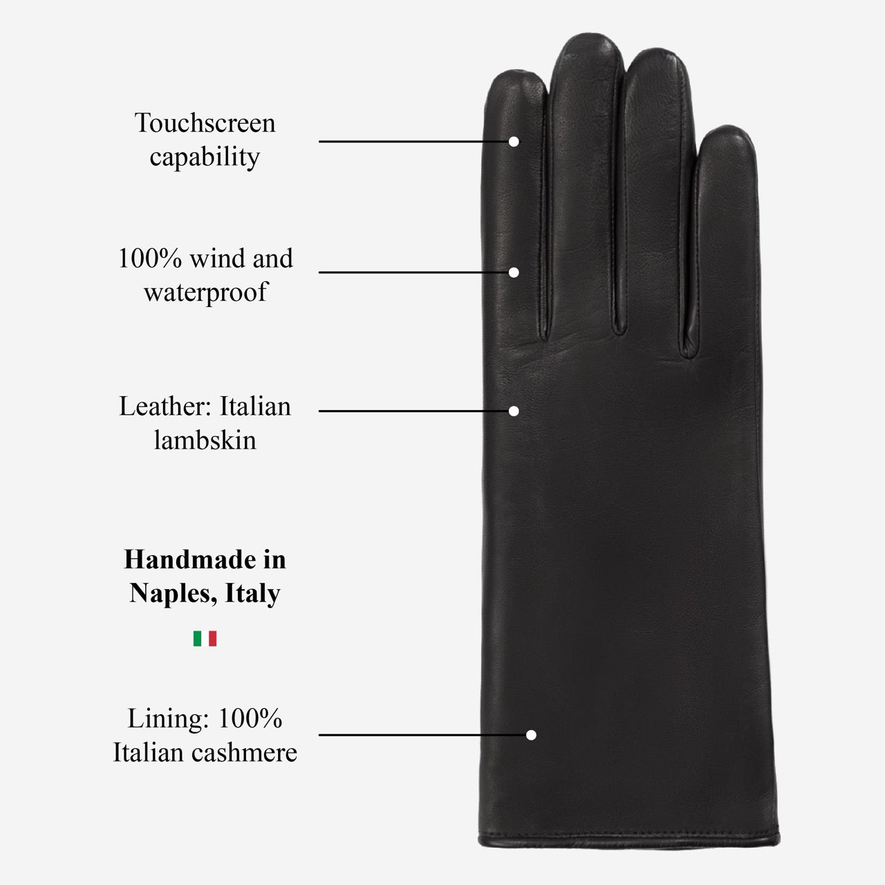 Bella (black) - Italian lambskin leather gloves with lambswool lining & touchscreen feature