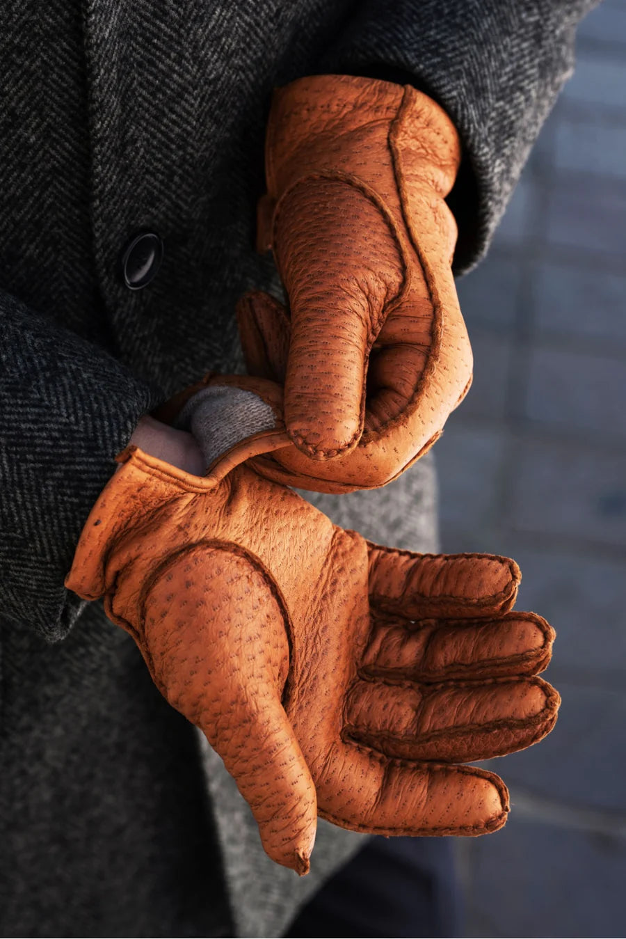 Peccary leather is the pinnacle of luxury when it comes to glove-making, renowned for its rarity, softness, and durability. Peccary leather is sourced from wild boars found in the forests of South America, making it one of the most exclusive and sought-after types of leather in the world. It’s instantly recognizable by its characteristic grain, which features natural, visible pores that give peccary gloves their distinct, textured appearance.