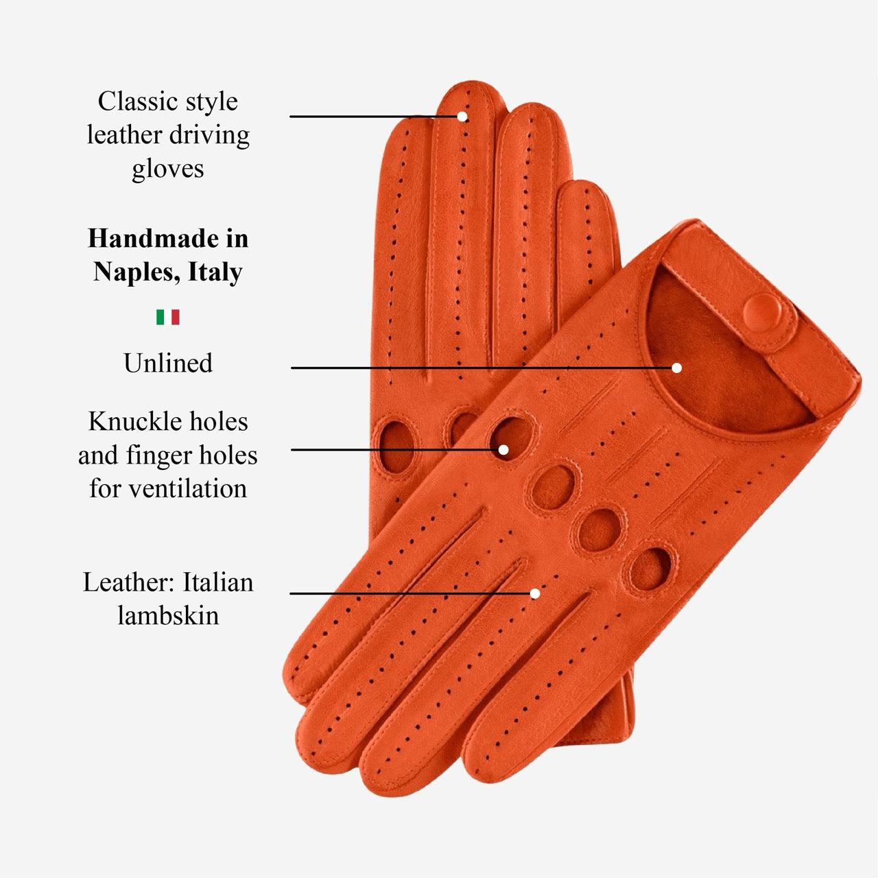 Alessa (orange) - Classic Italian lambskin leather driving gloves