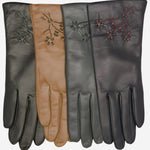 CC4101 (brown) - Women's Italian Cashmere Lined Leather Gloves with Floral Accents