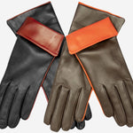 CC4141 (brown) - Women's Cashmere Lined Leather Gloves with Contrast Cuff