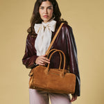 The Chiara handbag from Fratelli Orsini offers a softer expression of Italian luxury through its refined suede finish and gently structured silhouette. Handmade in Italy by skilled artisans, it is crafted from premium calf suede that creates a warm, tactile surface with a naturally elegant drape. The rounded top handles and clean proportions give the bag a graceful, understated presence that pairs well with both classic and contemporary styling.