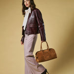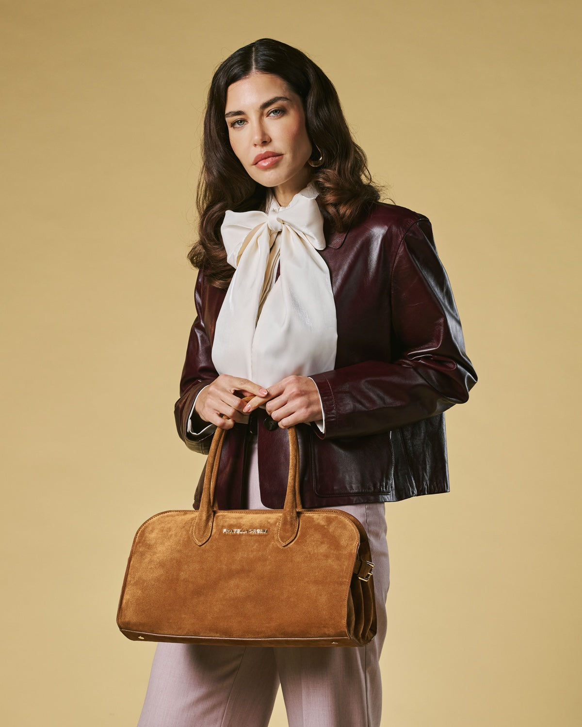 Chiara (cognac) - Italian calf suede women's handbag (with shoulder strap)