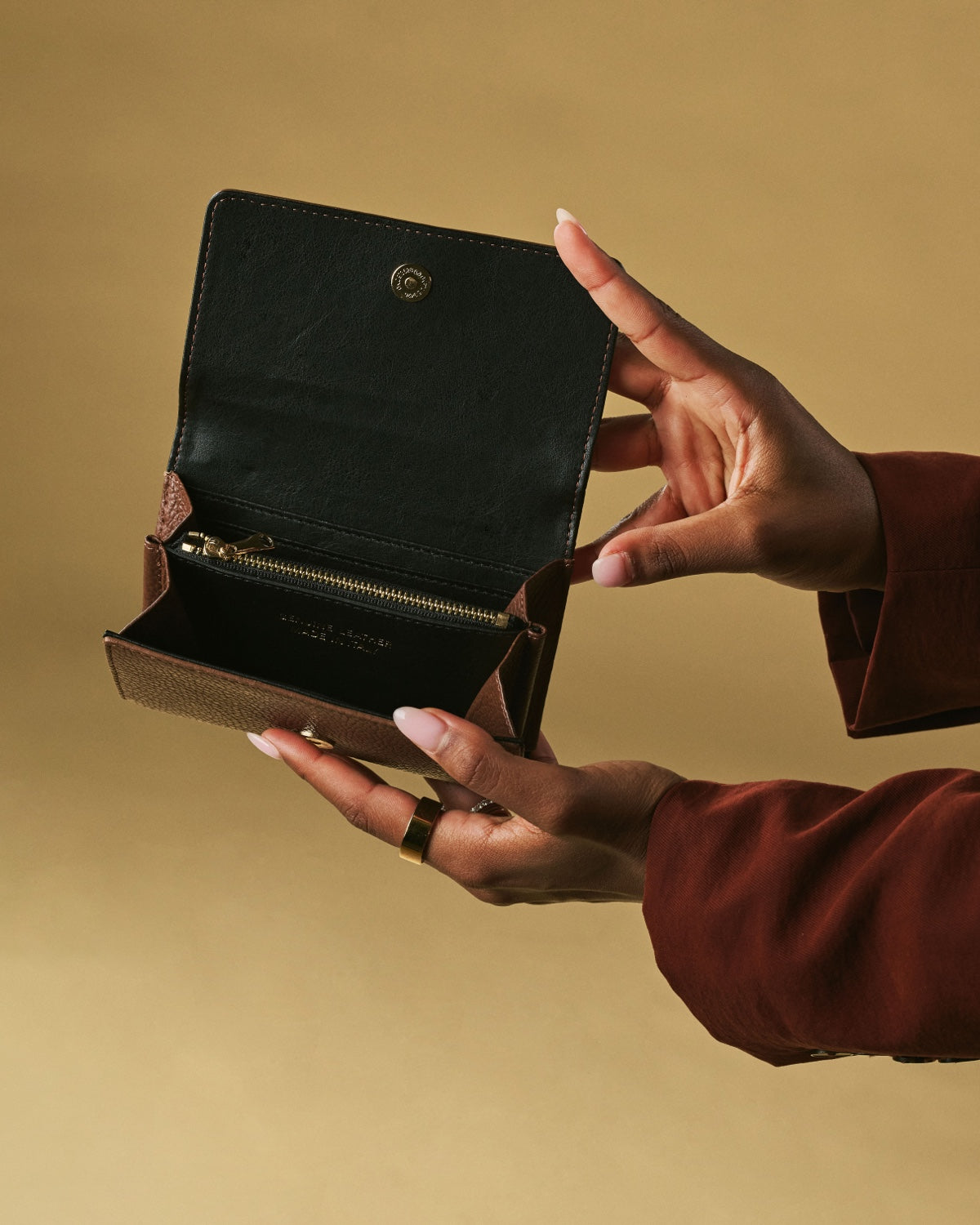 The Costanza wallet is a compact and elegant everyday piece crafted for those who prefer a smaller format without compromising on refinement. Handmade in Italy by skilled artisans, it is made from full-grain calf leather with a natural grain texture that feels soft in the hand while retaining its structure. The fold-over design keeps the silhouette minimal and easy to slip into a handbag or coat pocket.
