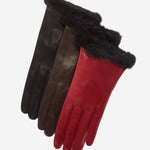 CS4616 (darkbrown) - Women's Italian Silk Lined Leather Gloves with Mink Cuff