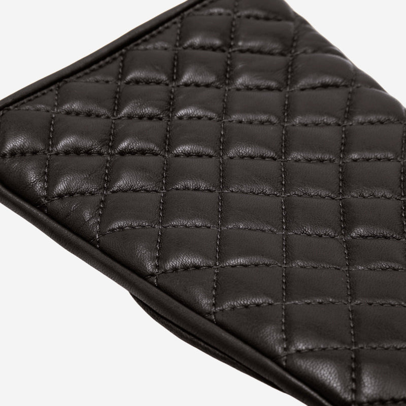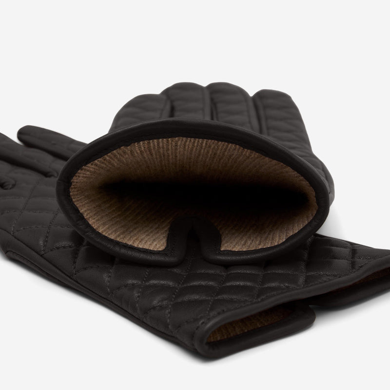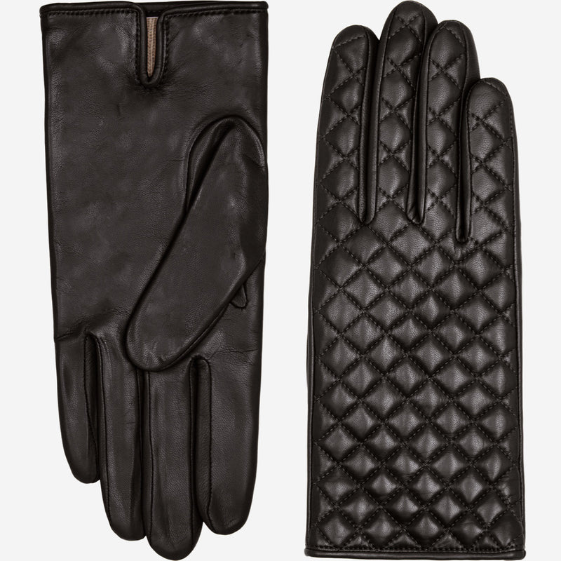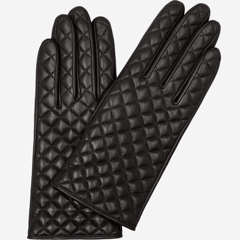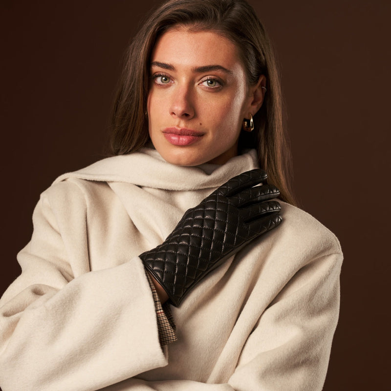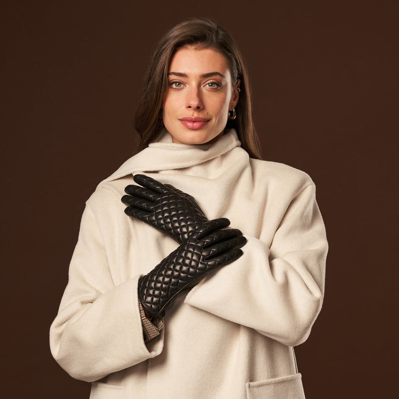 Emilia (black) - Classic Italian lambskin leather gloves with cashmere lining and checkered pattern