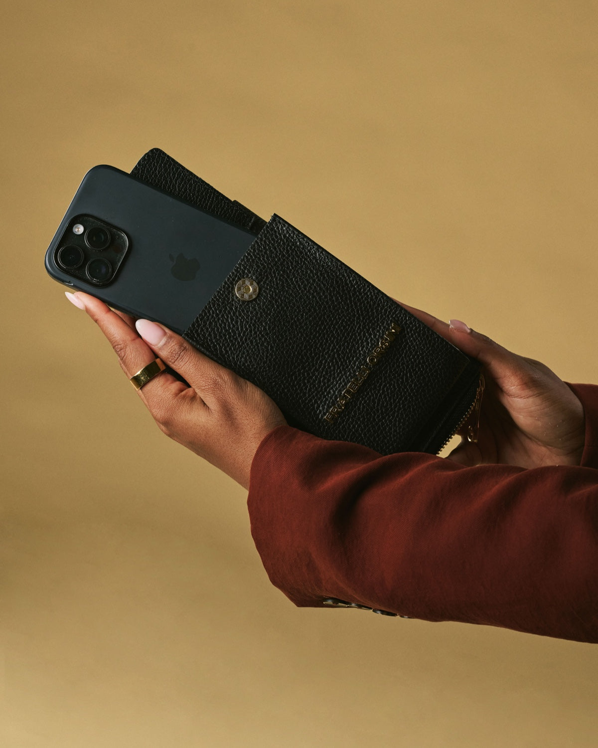 The Giada is a slim and refined phone bag designed for days when you only want to carry the essentials. Handmade in Italy by skilled artisans for Fratelli Orsini, it is crafted from full-grain calf leather with a natural grain texture that feels soft yet resilient. Its sleek vertical format keeps the silhouette minimal and discreet while remaining highly practical for everyday use.
