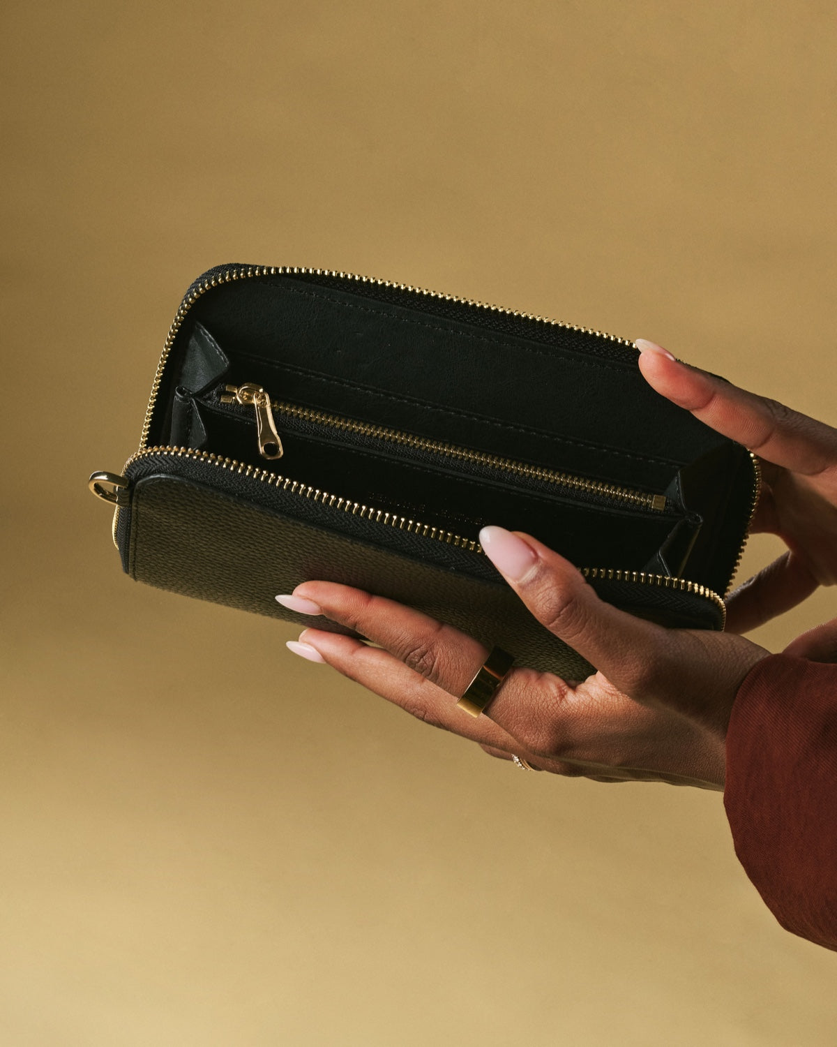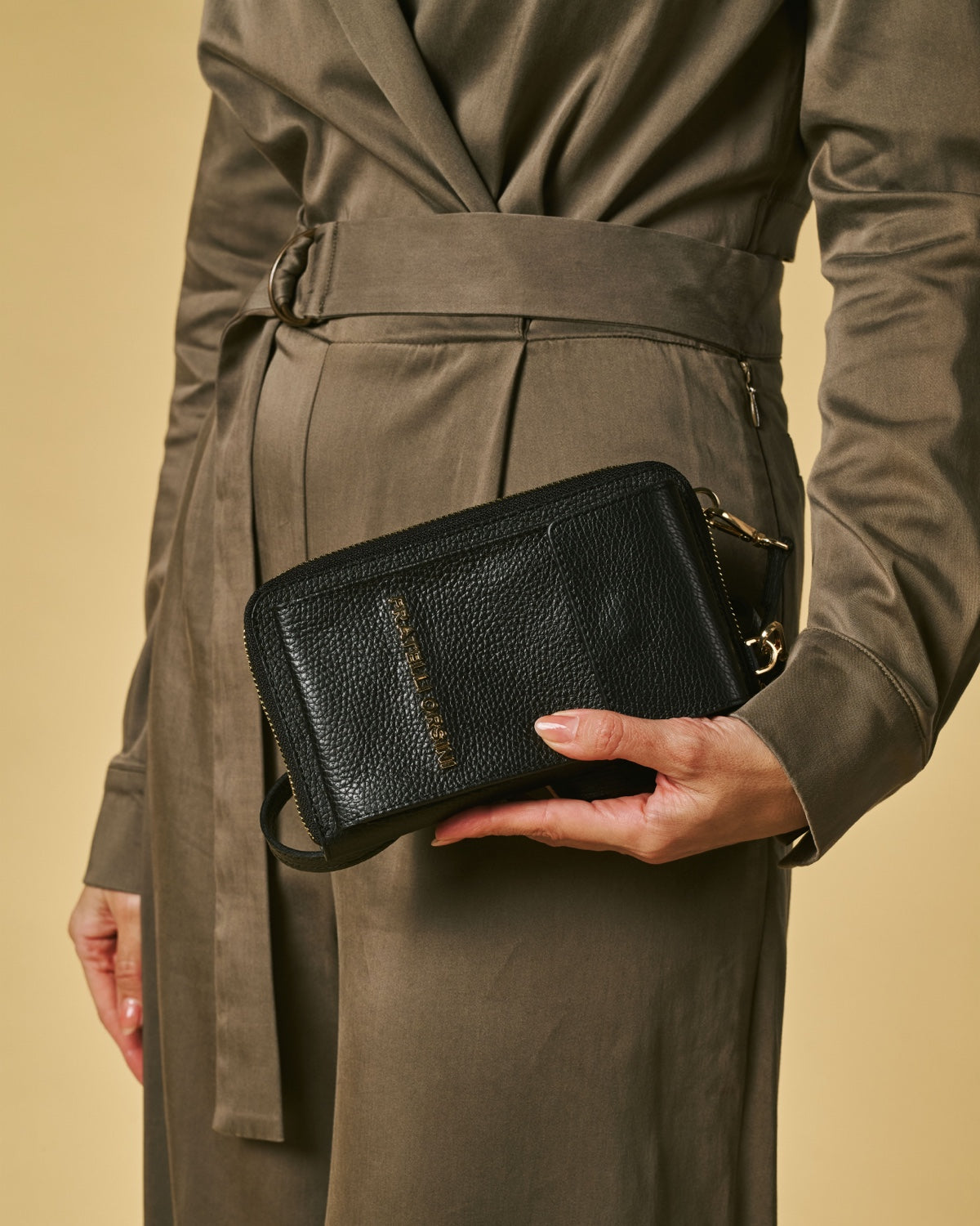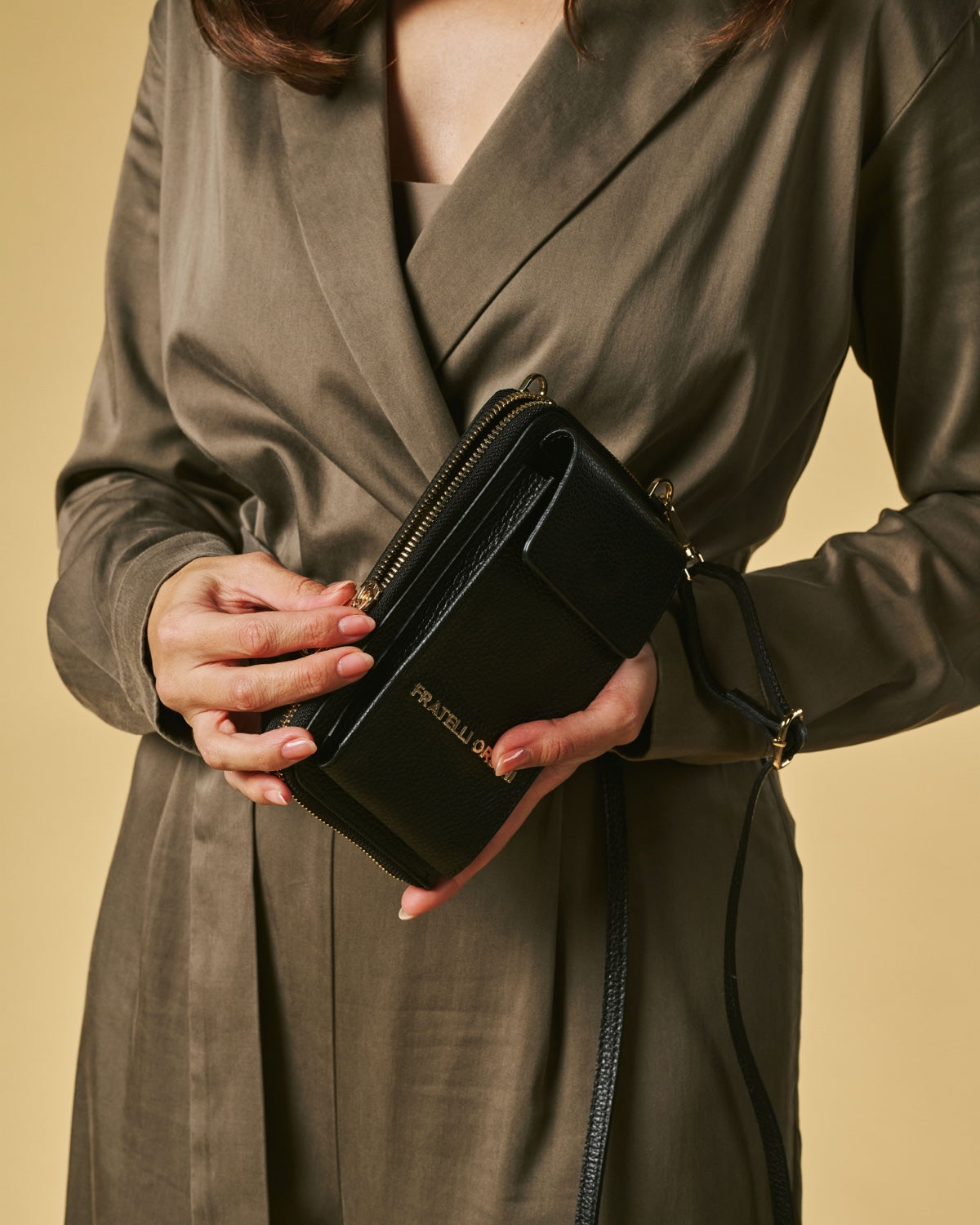 Giada (black) - Women's crossbody phone wallet with shoulder strap