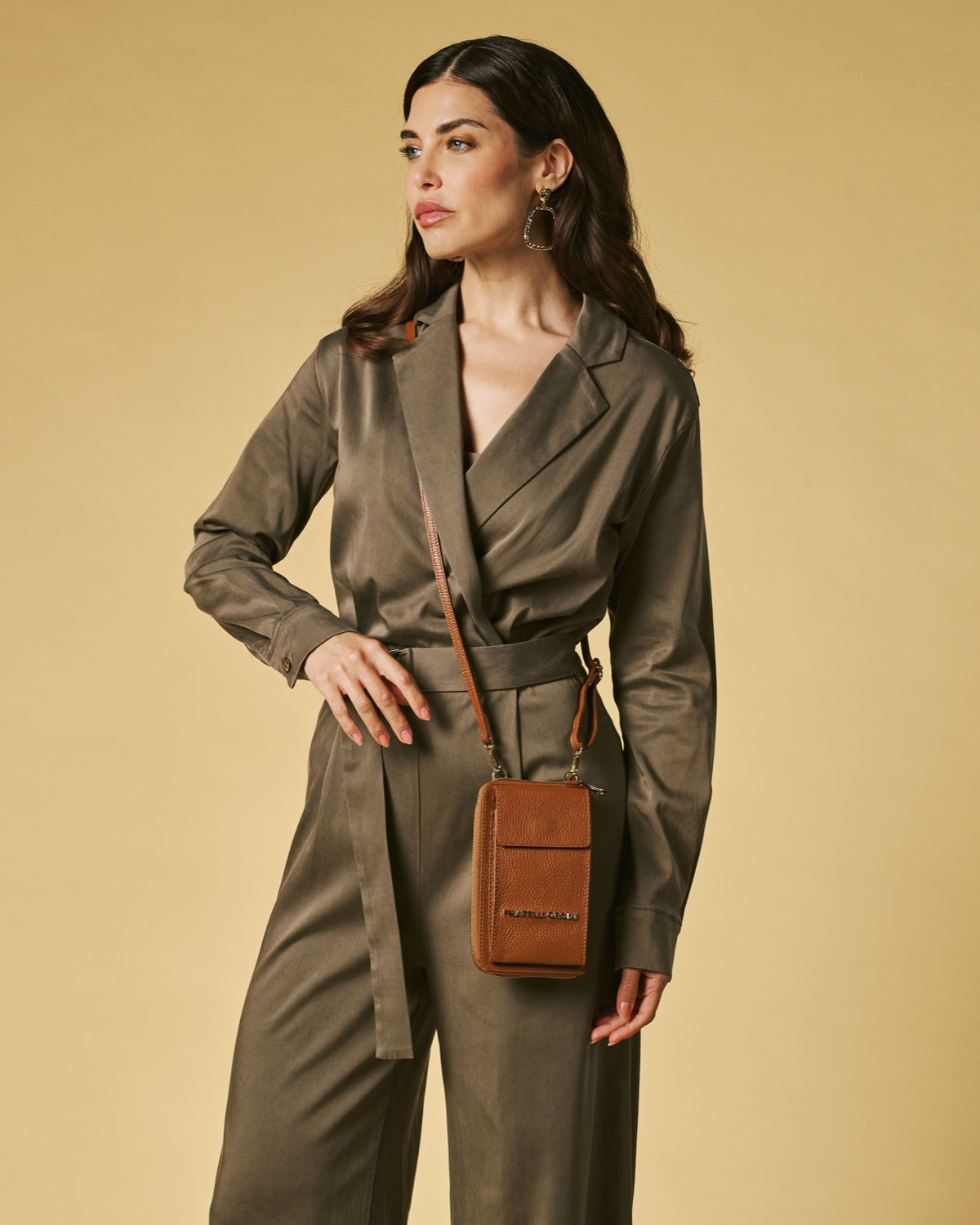 Inside, the Giada offers space for a smartphone along with room for cards and small necessities, functioning as both a compact wallet and a hands-free bag. It measures 11 cm in width, 19 cm in height and 2 cm in depth, making it ideal for travel, city wear, or occasions when a full-sized handbag is not needed. A slender strap allows it to be worn crossbody or over the shoulder, offering effortless versatility in a lightweight form.
