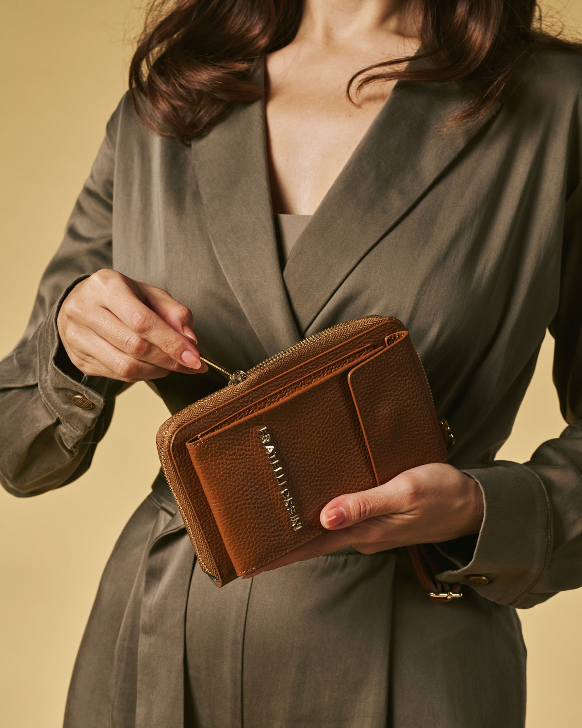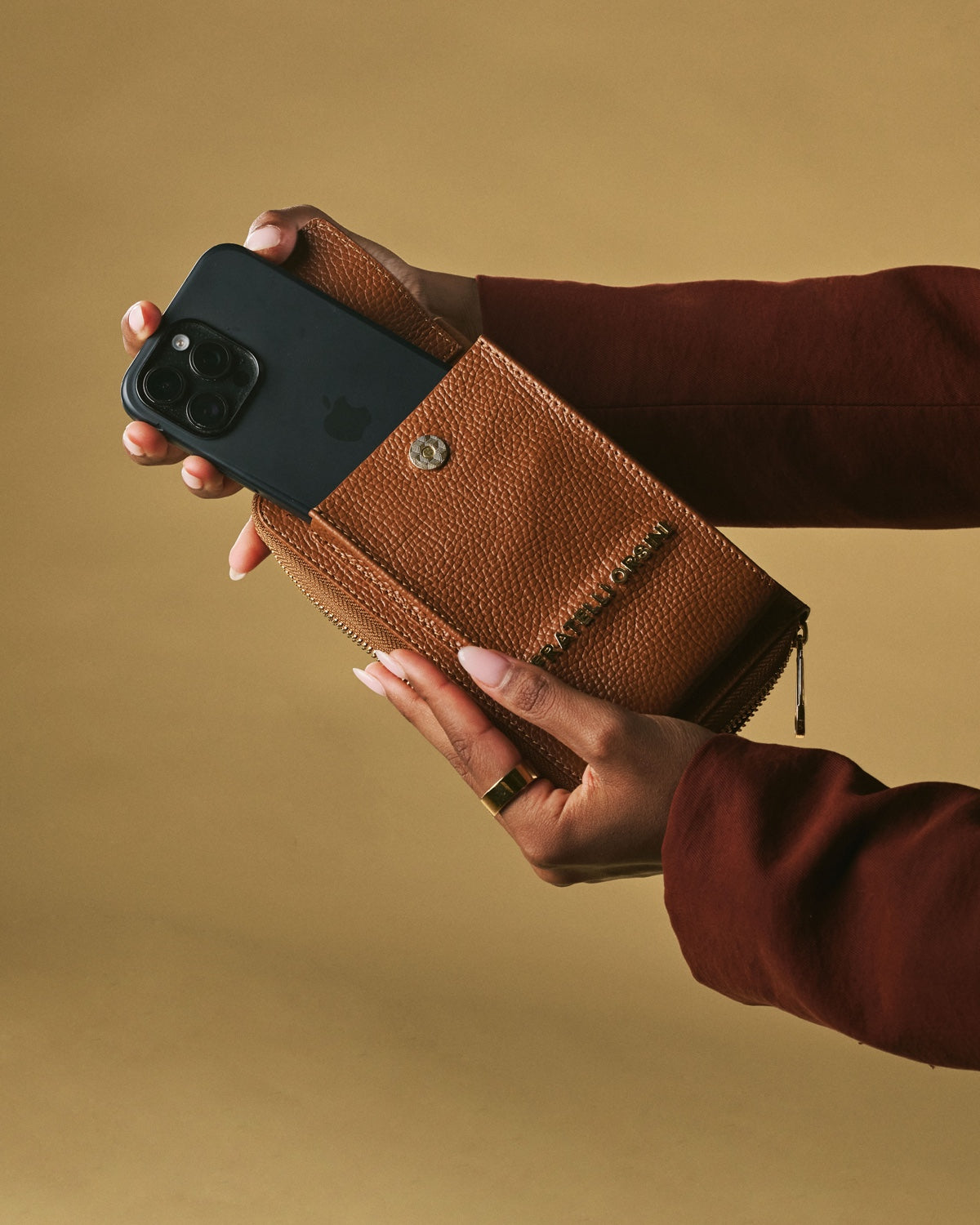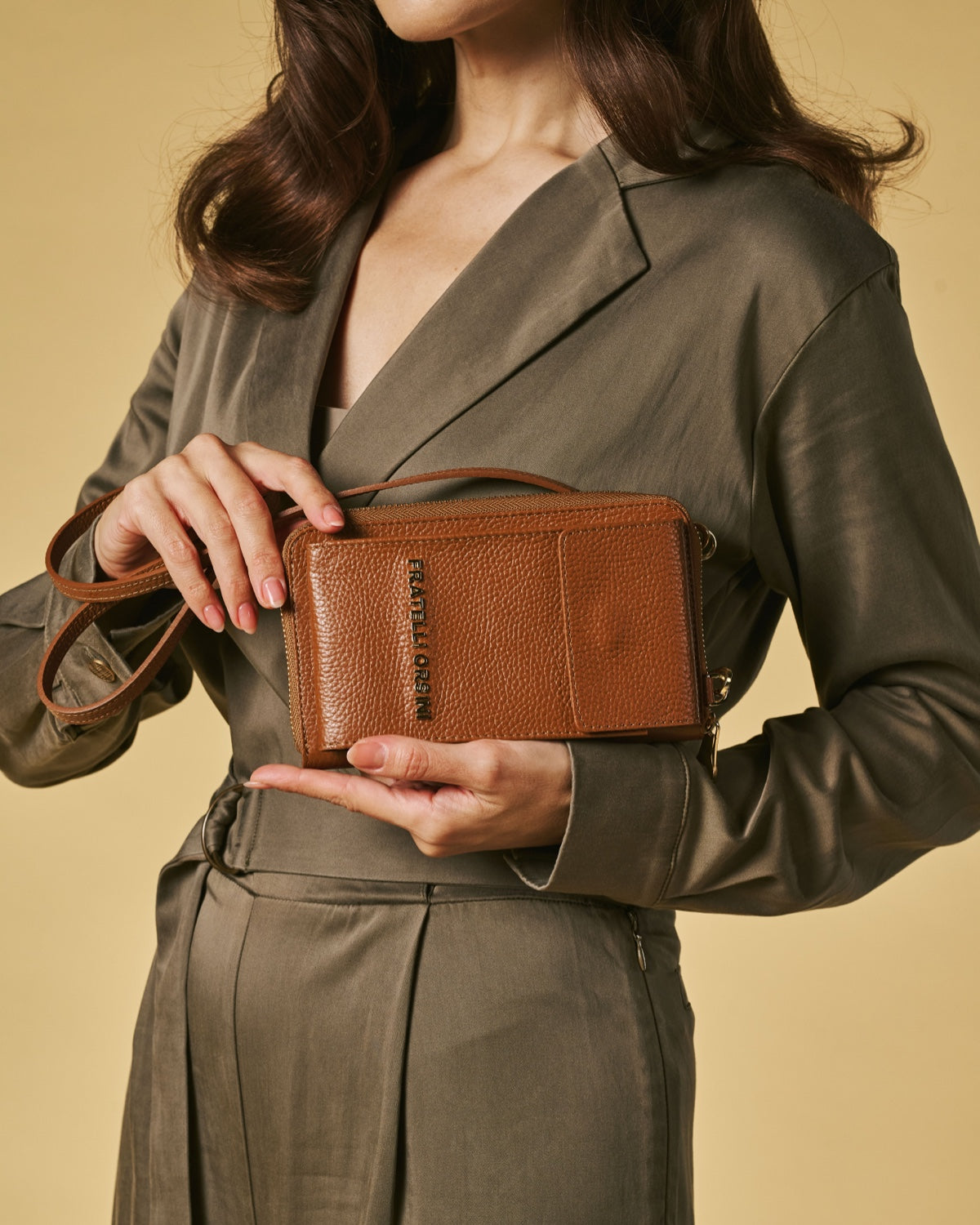 The Giada is a slim and refined phone bag designed for days when you only want to carry the essentials. Handmade in Italy by skilled artisans for Fratelli Orsini, it is crafted from full-grain calf leather with a natural grain texture that feels soft yet resilient. Its sleek vertical format keeps the silhouette minimal and discreet while remaining highly practical for everyday use.