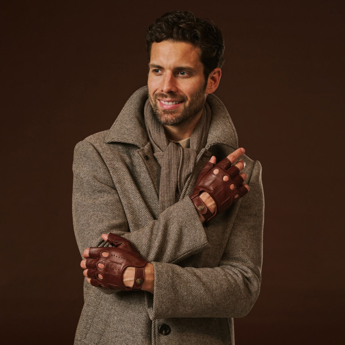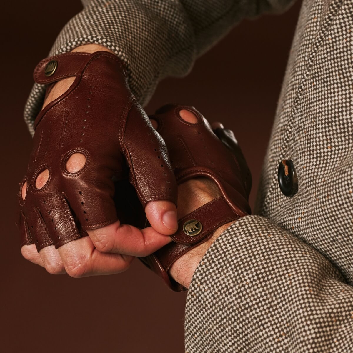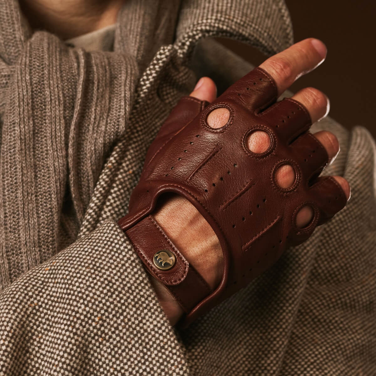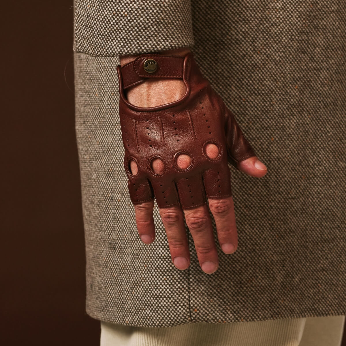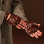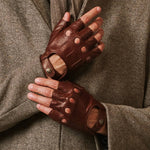 Giuseppe (brown) - Italian lambskin fingerless leather driving gloves