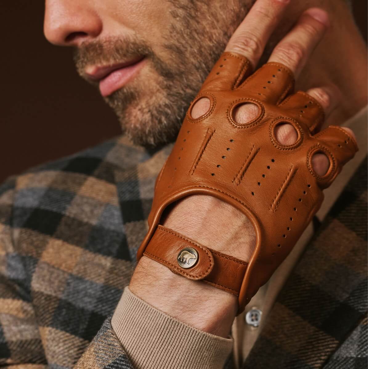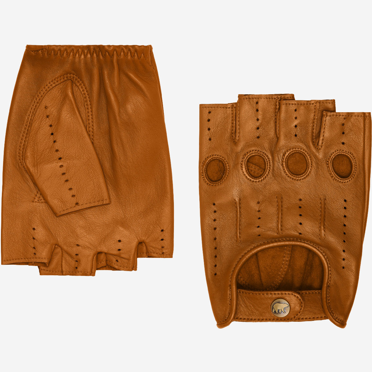 Giuseppe (cognac) - Italian lambskin fingerless leather driving gloves