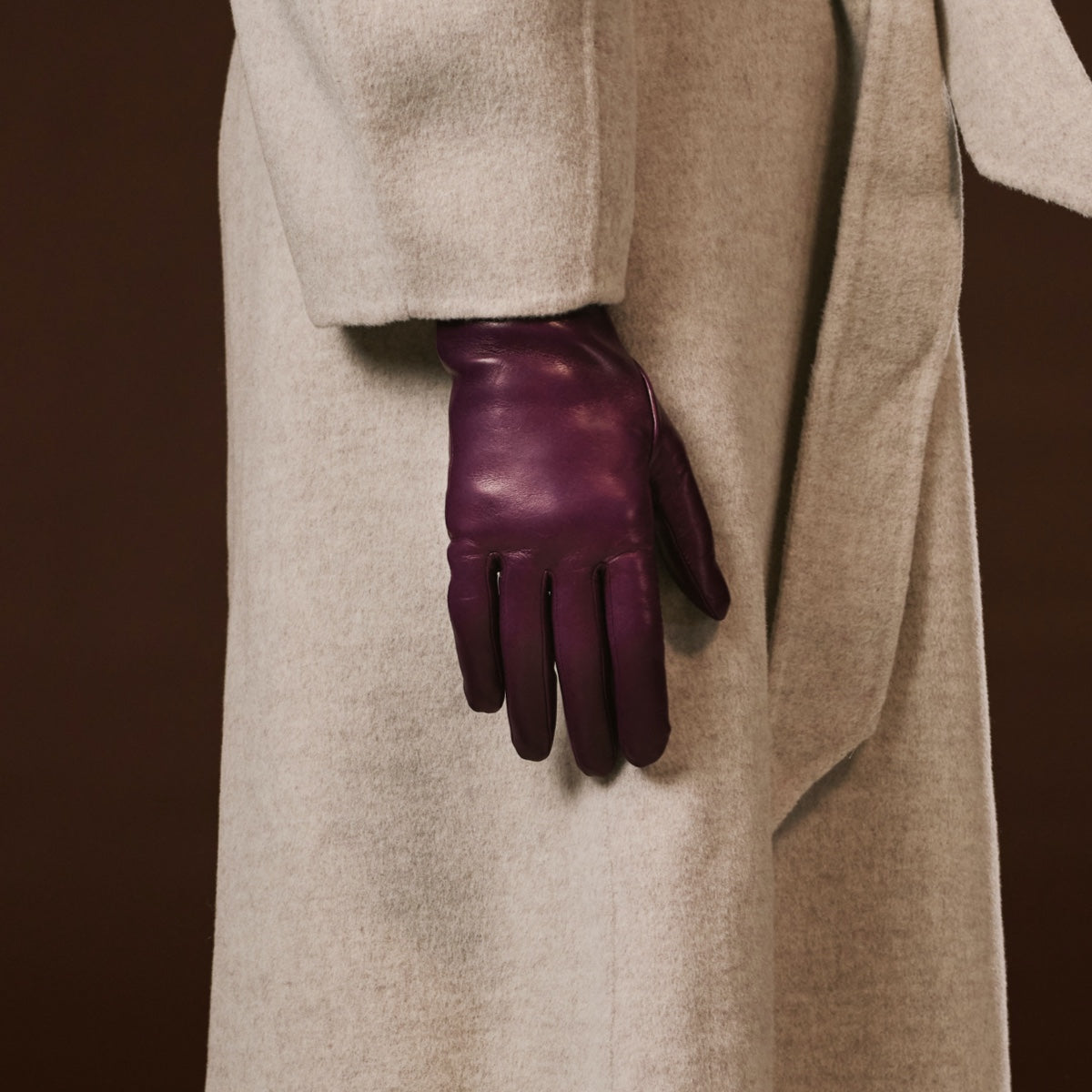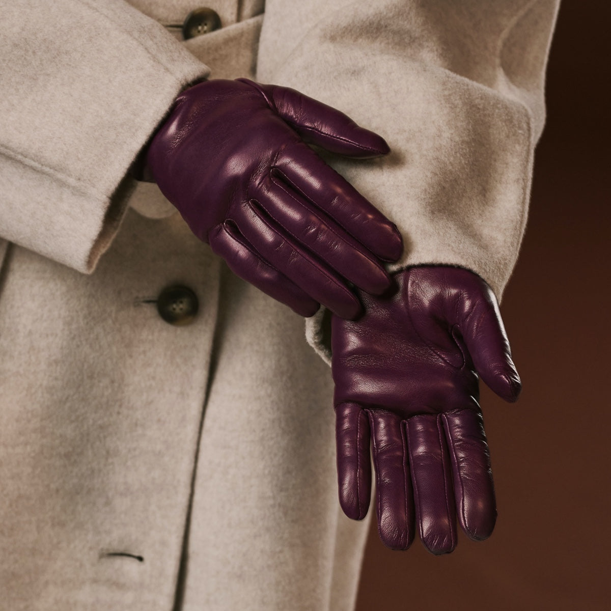 Isabella (eggplant) - Italian lambskin leather gloves with cashmere lining