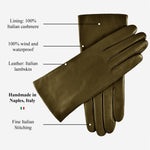 Isabella (green) - Italian lambskin leather gloves with luxurious cashmere lining