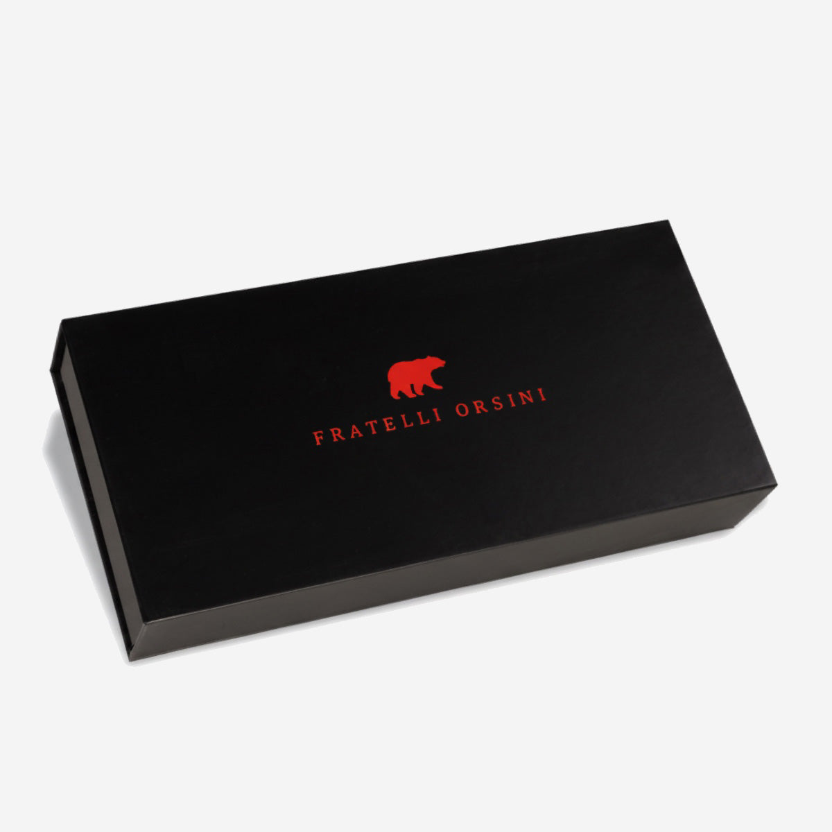 Make your gift truly special with the Fratelli Orsini luxury gift box. Crafted from solid, premium materials, it features a magnetic closure and the signature red Fratelli Orsini logo. The perfect finishing touch for presenting any pair of our Italian gloves — and an ideal gift to place under the Christmas tree.