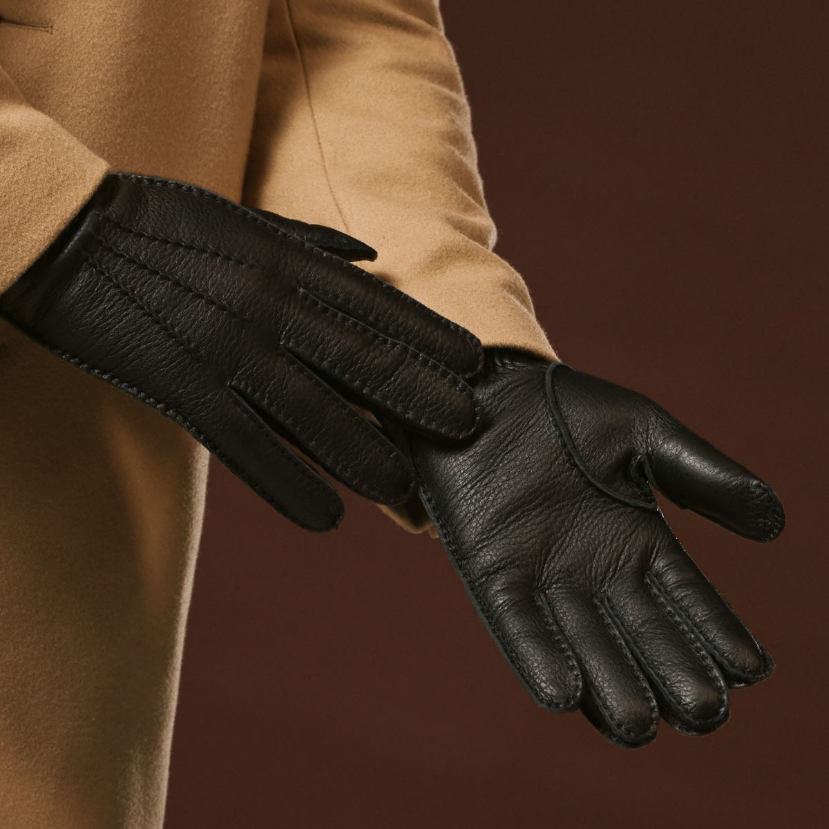 Matteo (black) - Italian gloves made of American deerskin leather with cashmere lining