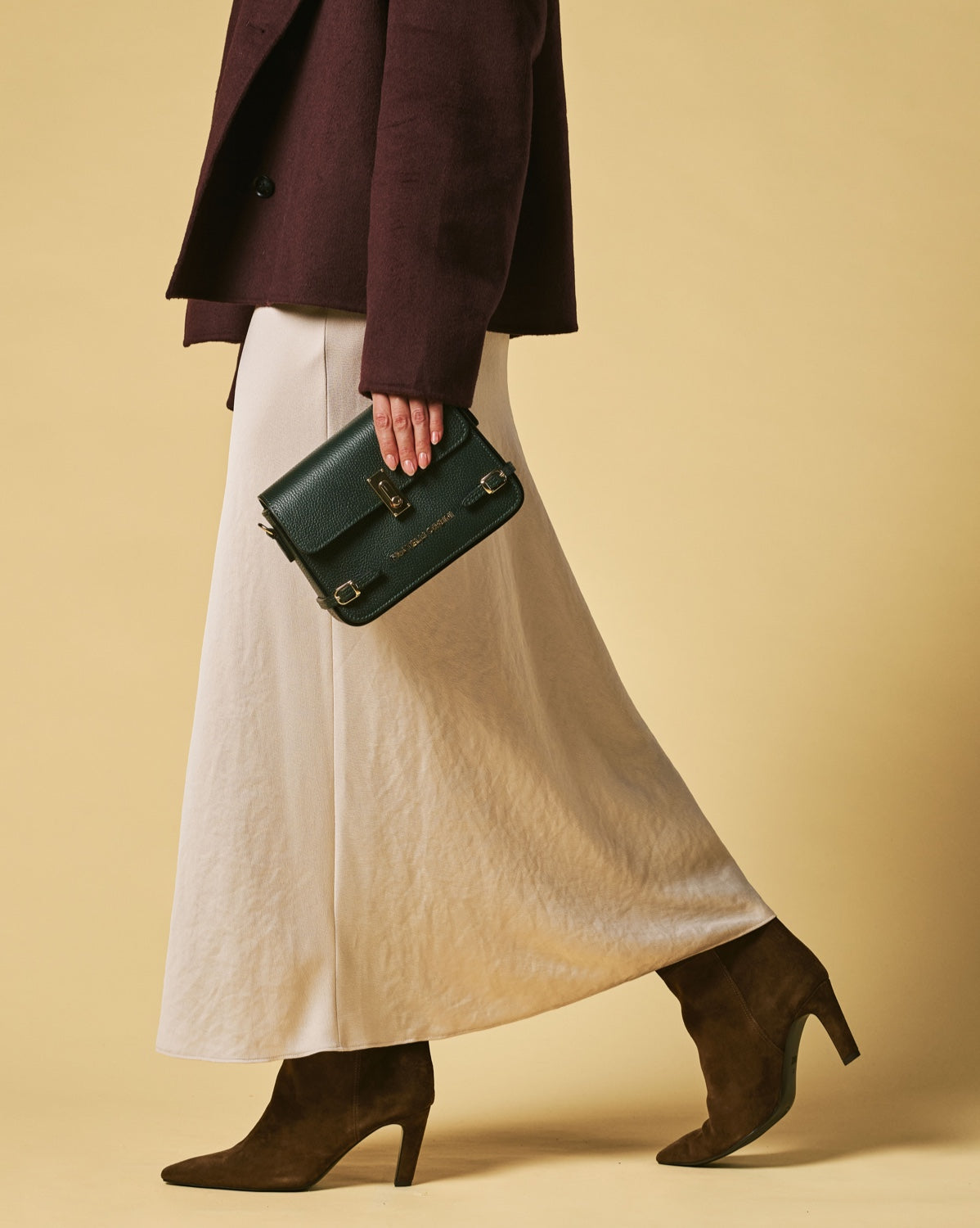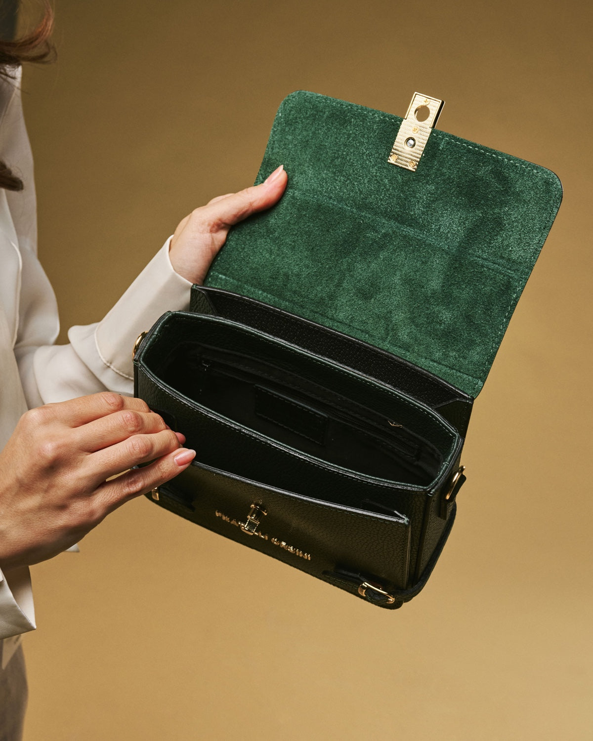 Mirella (green) - Italian calf leather women's crossbody bag (with shoulder strap)