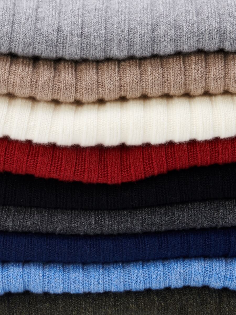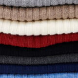 The scarves are available in 9 colors, for him and for her. Find a perfect match with our warm ribbed cashmere beanies.