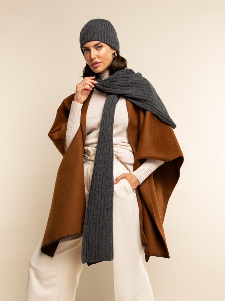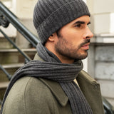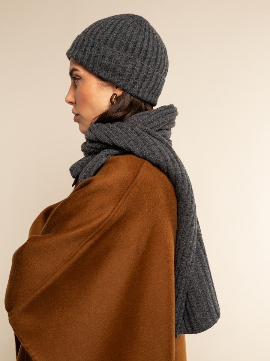 Napoli (dark grey) - 100% cashmere ribbed scarf (unisex)