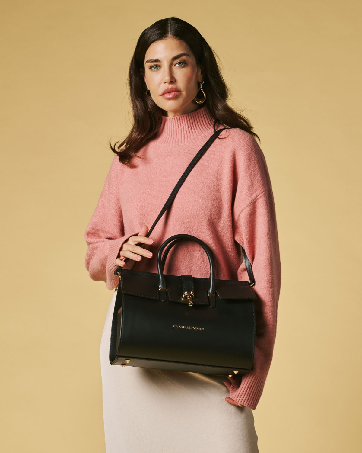 Oriana (black) - Italian calf leather women's handbag (with shoulder strap)