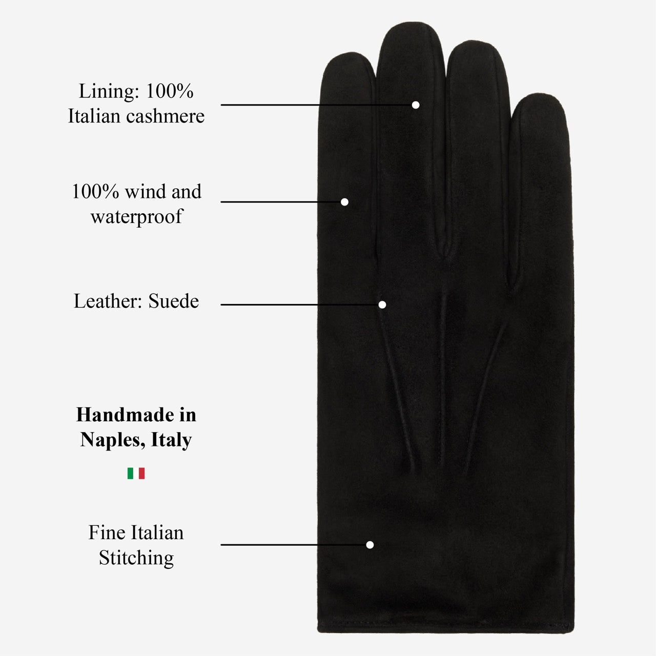 Silvia (black) - Suede leather gloves with luxurious cashmere lining