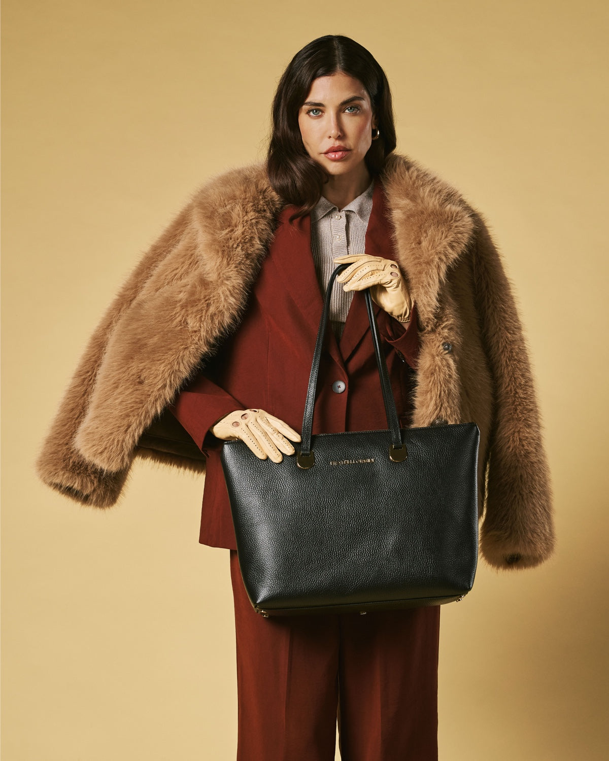 The Simona shoulder bag from Fratelli Orsini is designed for those who value refined simplicity and everyday practicality. Handmade in Italy by skilled artisans, it is crafted from full-grain calf leather with a natural grain texture that gives the design a soft yet structured appearance. The elongated straps allow the bag to rest comfortably over the shoulder, making it an elegant companion for daily wear.