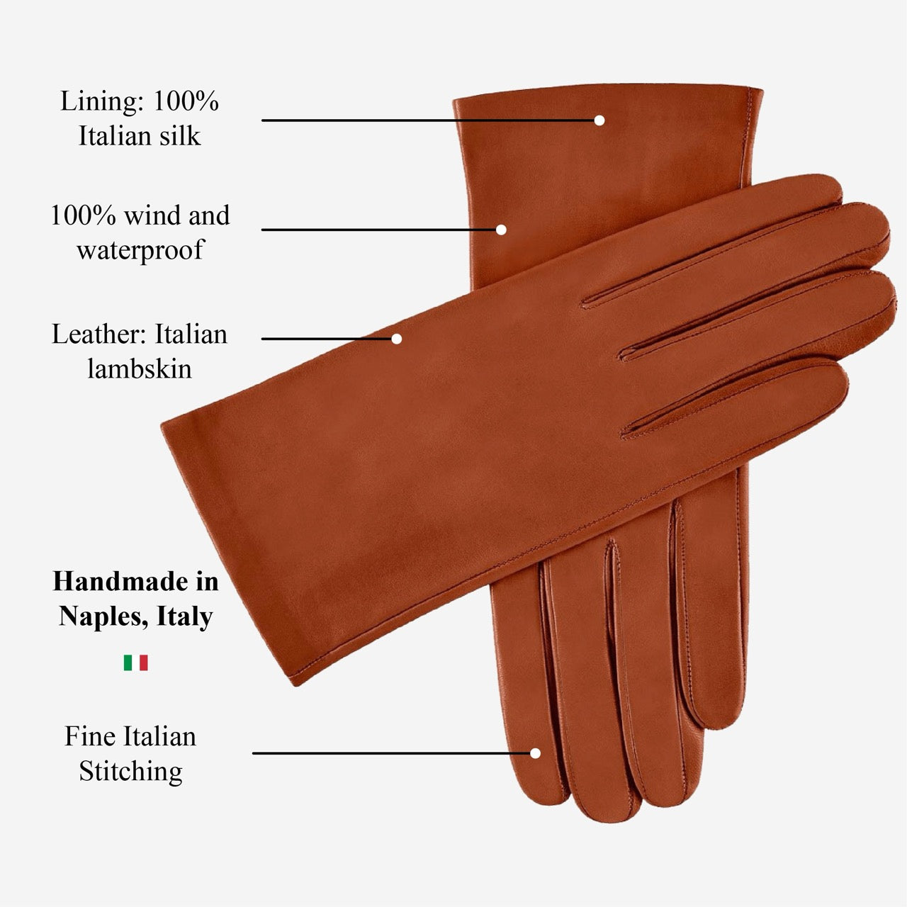 Silk lining: Fully lined with 100% Italian silk, the gloves envelop your hands in unmatched softness and breathable comfort, enhancing both luxury and wearability.