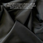 Silk lining: Fully lined with 100% Italian silk, the gloves envelop your hands in unmatched softness and breathable comfort, enhancing both luxury and wearability.