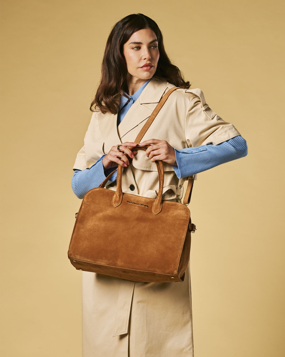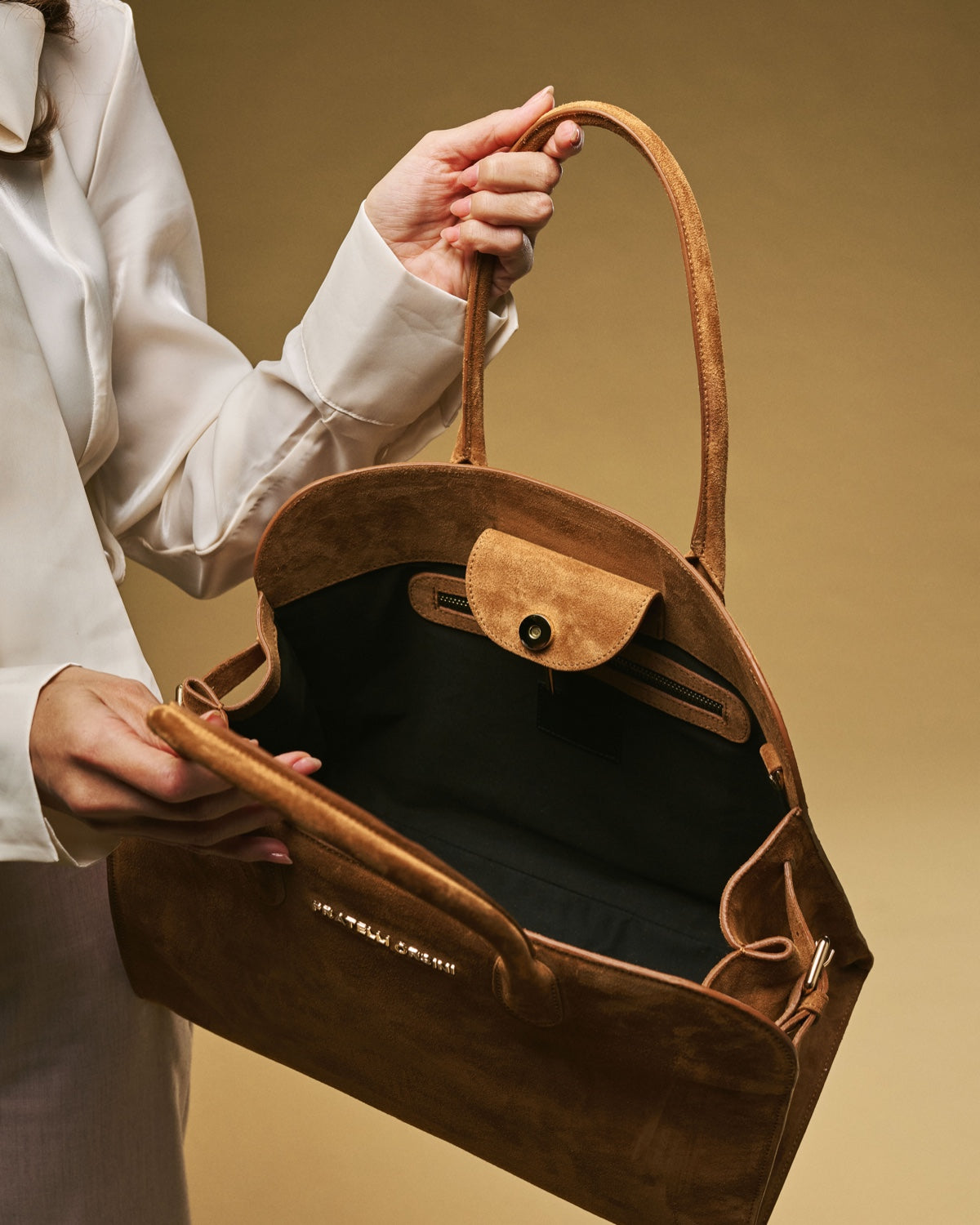 With its spacious interior, the Viviana is ideal for work, travel or daily use without compromising on style. It measures 38 cm in width, 28.5 cm in height and 20 cm in depth, with a total capacity of 21.7 liters. Comfortable top handles and a detachable strap allow it to be carried by hand or over the shoulder, making it a versatile companion rooted in Italian craftsmanship.